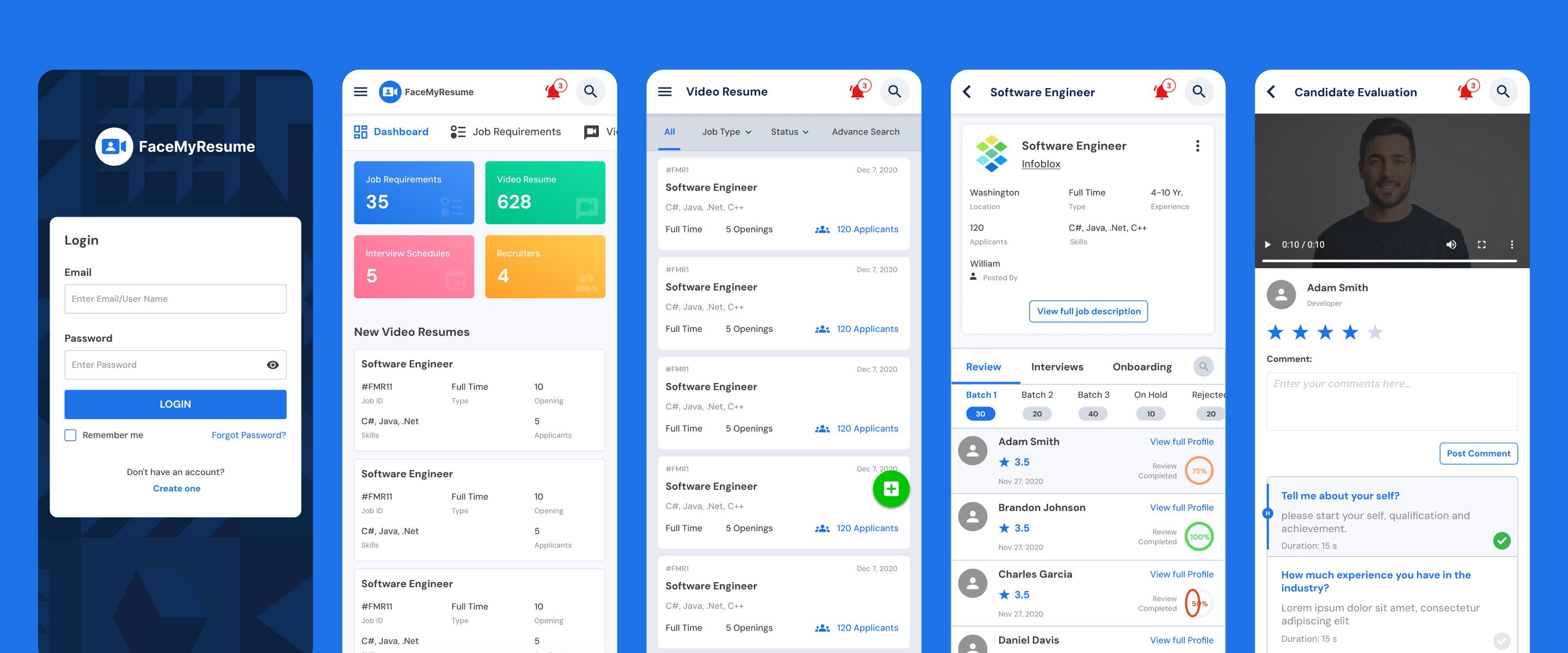 We created low-fidelity recruiter dashboards to bring clarity to the workflow and ensure a seamless experience. Additionally, we designed candidate-facing flows with progress trackers to enhance transparency and engagement throughout the application process. The designs were iterated multiple times based on valuable feedback from both recruiters and candidates before moving on to the final visual designs.